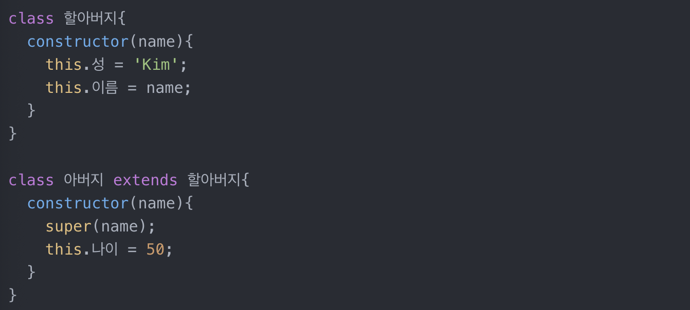 쉽게 말하면 할아버지 class의 constructor()랑 똑같다는 소리이다.