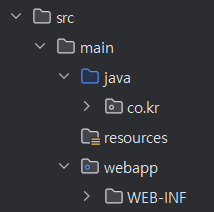 SpringMVC + JSP 를 구현하기 위해서는 src의 하위 디렉토리가