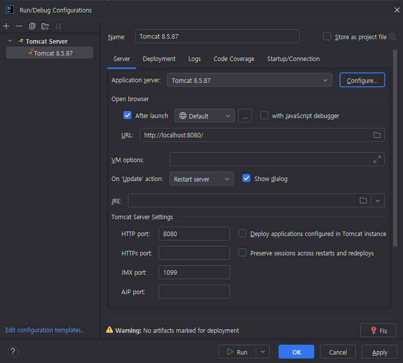 본 글에서는 TomCat 서버의 설정을 아직 하지 않았다고 가정합니다.