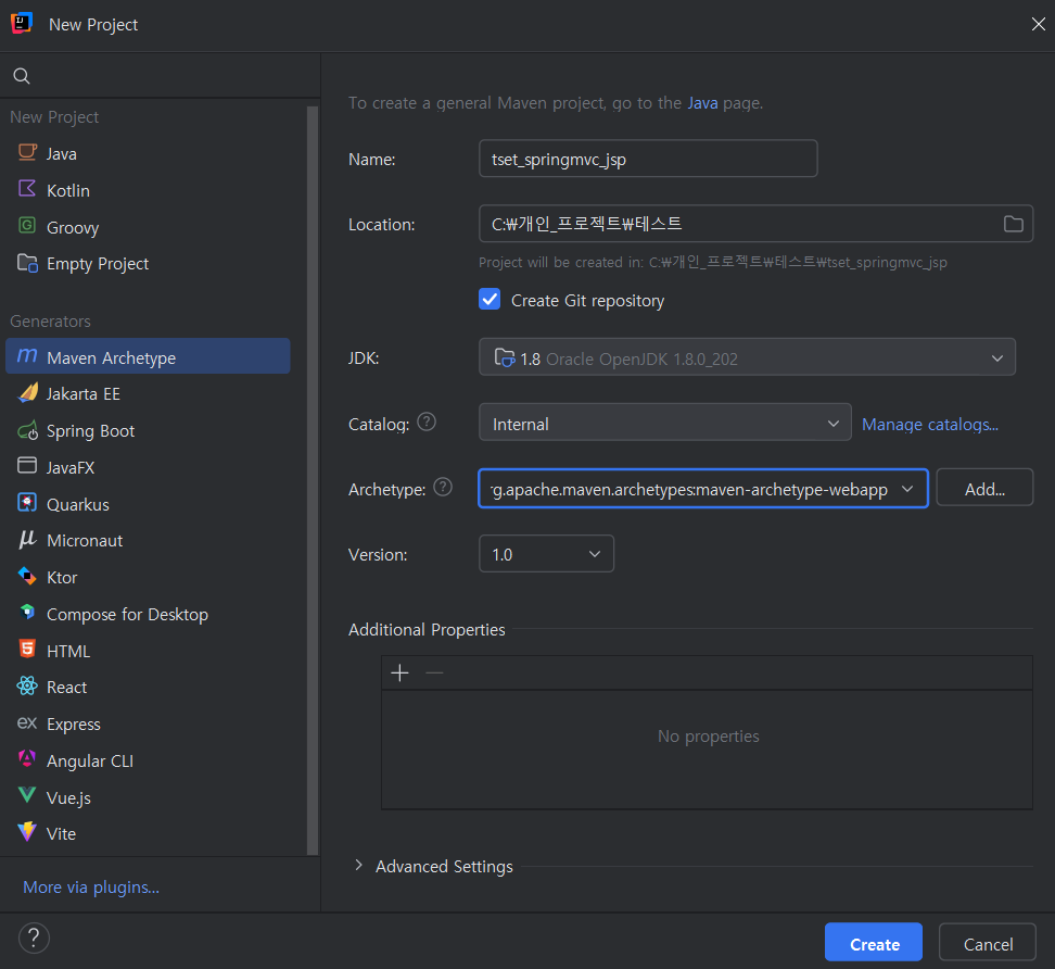 Archetype은 webapp으로 지정해 줍니다. (푸른 테두리)