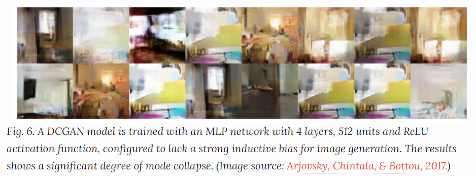 - Generator가 형편없는 이미지들을 생성했는데 Discriminator가 진짜라고 하니, Generator는 그런 비슷한 이미지만 만드는 것 입니다. 이는 Discriminator를 속이는건 성공했지만 현실의 데이터를 표현하지 않습니다.
