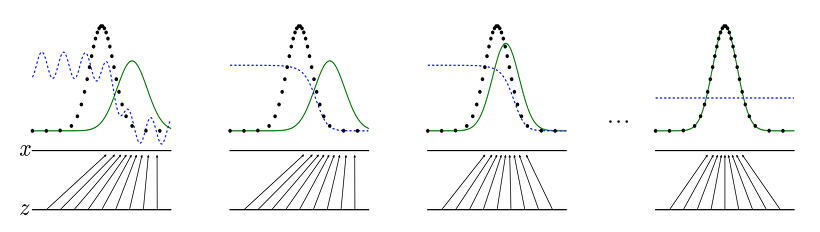 학습이 지남에 따라 생성모델의 분포가 학습모델의 분포와 비슷해지는 것을 확인할 수 있습니다.