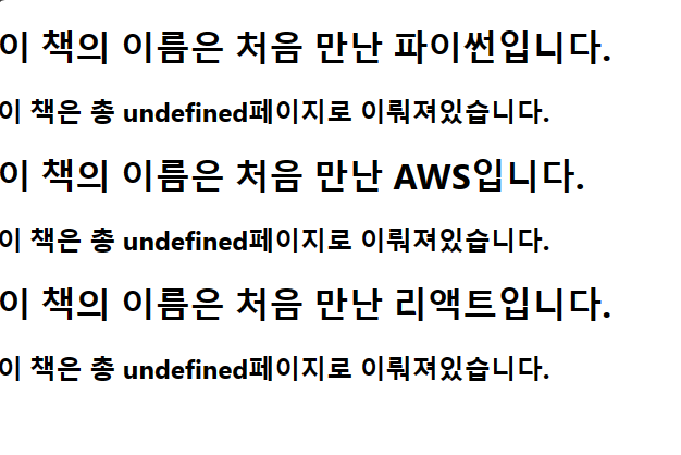 <h1>{`이 책의 이름은 ${props.name}입니다.`}</h1>