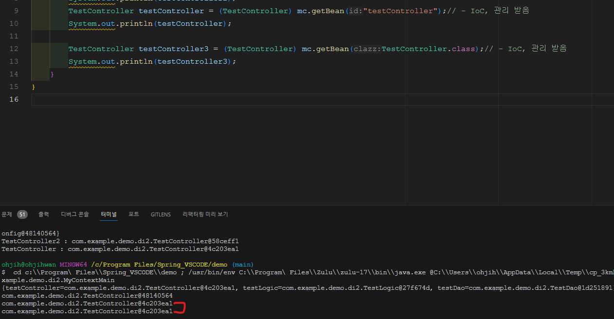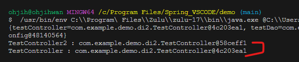 testController와 testController3는 같은 주소번지를 가지고 있다 (싱글톤으로 관리되고 있다.)