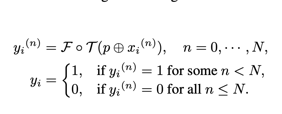 결국, p + xi를 T에 집어넣고 그 output를 F로 evaluate하는 것.