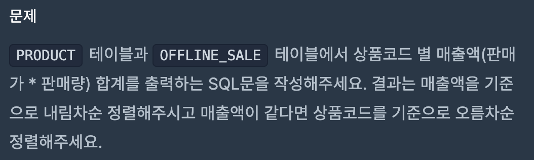 JOIN OFFLINE_SALE O ON P.PRODUCT_ID = O.PRODUCT_ID