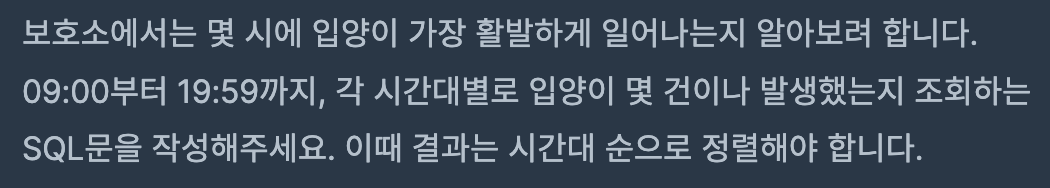HOUR 함수를 사용하여 아주 간단하게 해결할 수 있는 문제였다. HOUR 함수는 날짜 및 시간 값에서 시간(hour) 부분을 추출하는 데 사용한다.