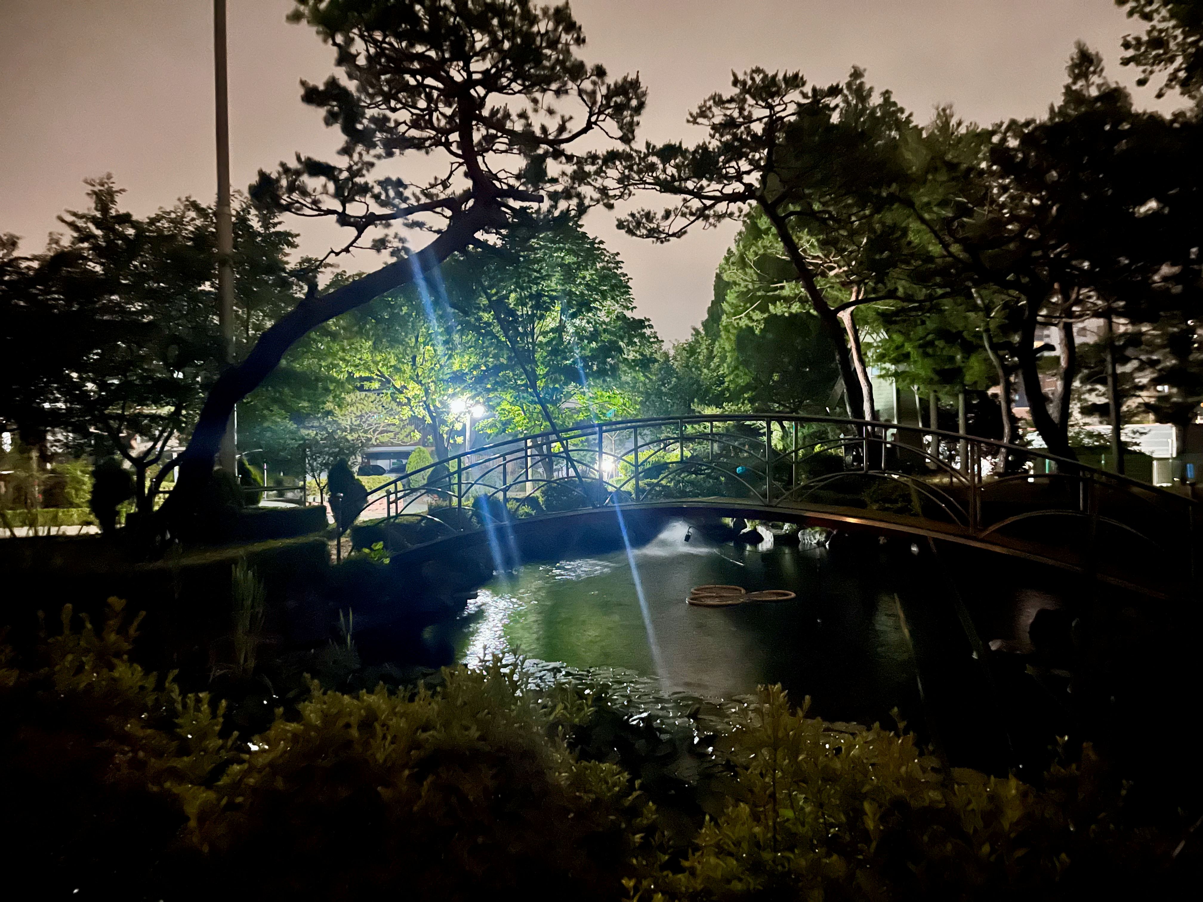 작은 인공 연못과 함께 다리, 놀이터도 있었다.