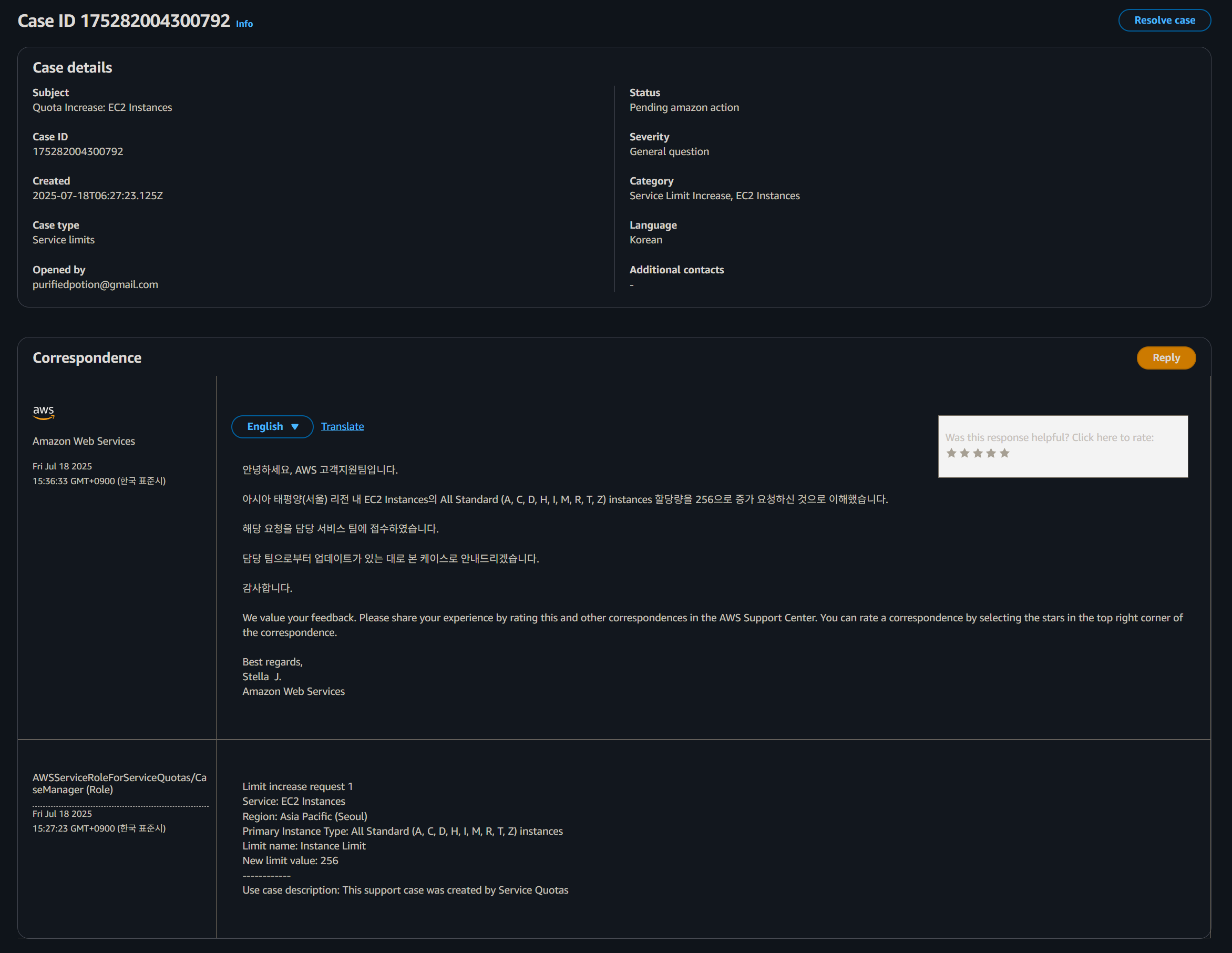 1 | vCPU 할당량 추가 확보 | 안정적 인스턴스 운영을 위해 150 vCPU+ 로 상향 |