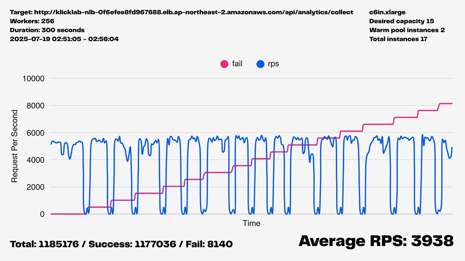 이 중 병목 지점은 예상 밖에도 EC2 (Auto Scaling)이었다.