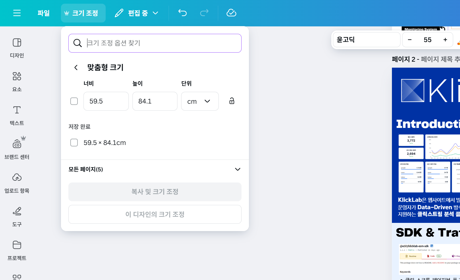 다만 Canva의 크기 조정 기능은 유료 플랜에서만 제공된다.
