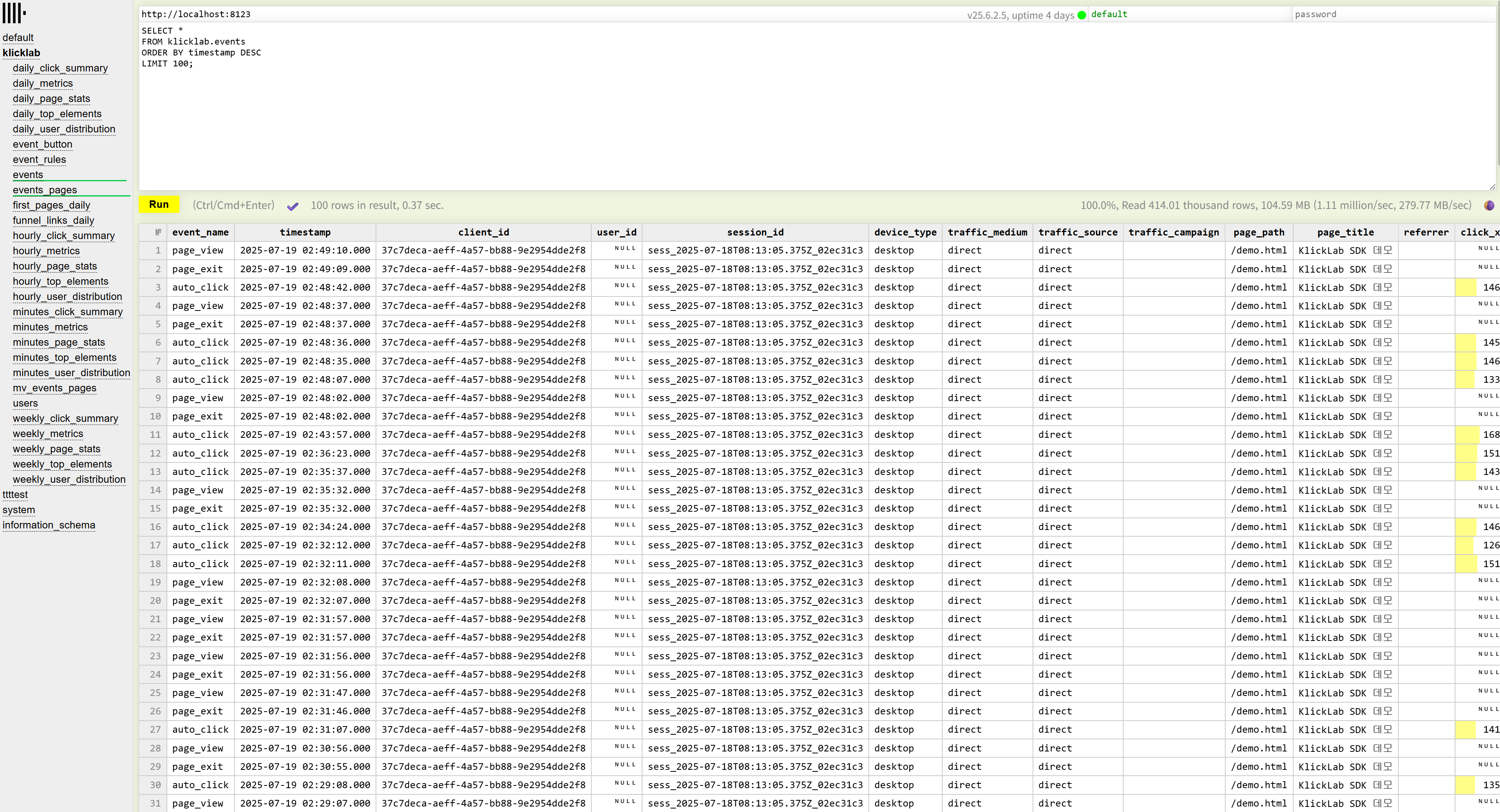 실제로 클릭하우스에 쌓이는 이벤트 데이터