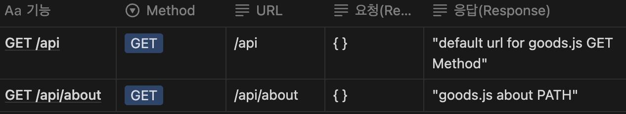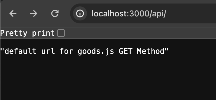 이렇게 하면, http://localhost:3000 뒤에 /api 로 시작되는 주소는 routes/goods.js 에 있는 Router Middleware를 통해 처리된다.