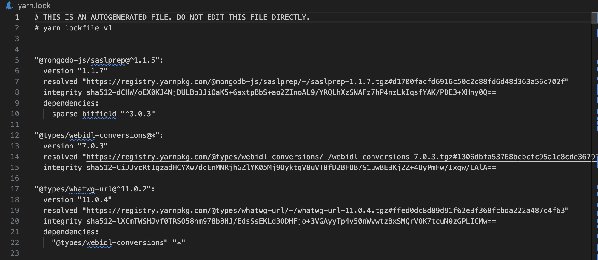 yarn.lock 이란?package.json의 "dependencies" 목록에 추가된 패키지들이 yarn add 명령어를 통해 같이 설치된 패키지들 과의 dependency 관계가 정리된 파일이다.
