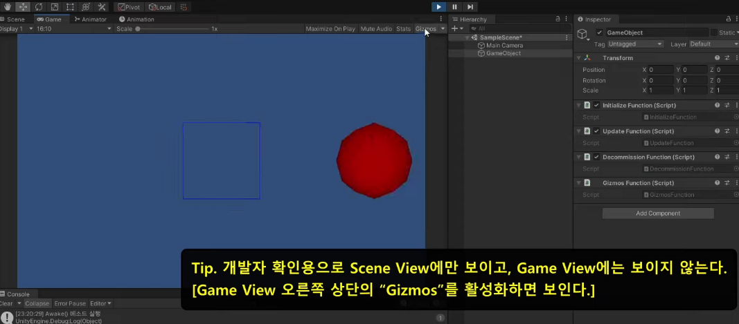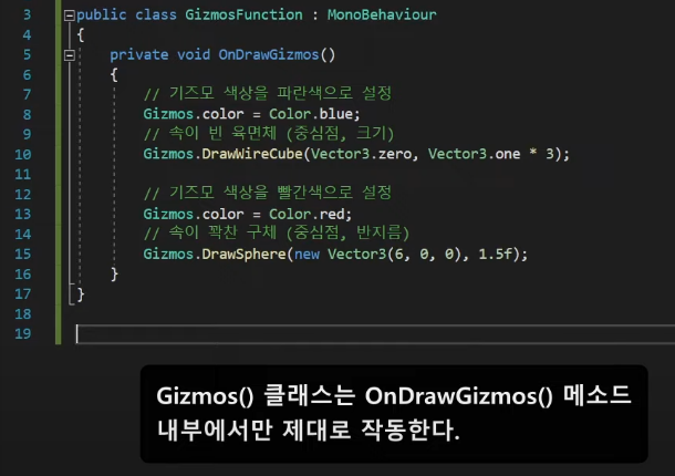 유니티 Editor의 Scene View에만 출력되는 선,도형입니다.