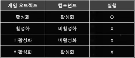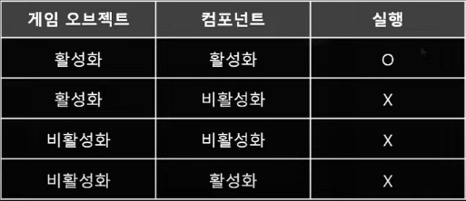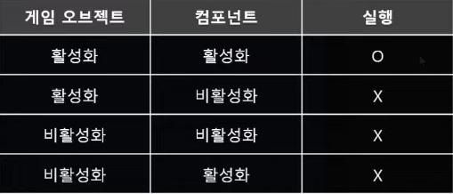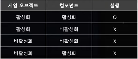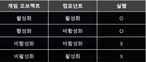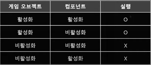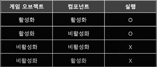 OnDisable() 메소드는 게임 오브젝트와 컴포넌트가 모두 활성화 되었을때 호출됩니다.