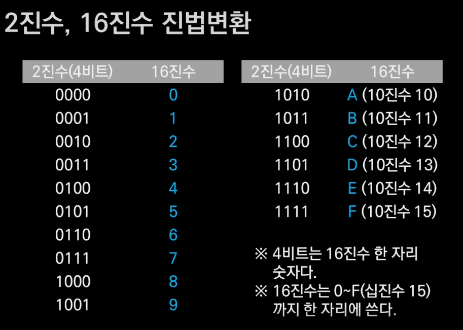 16진수 자릿수 하나가 2^4(4bit)을 표현할 수 있기 때문이다.