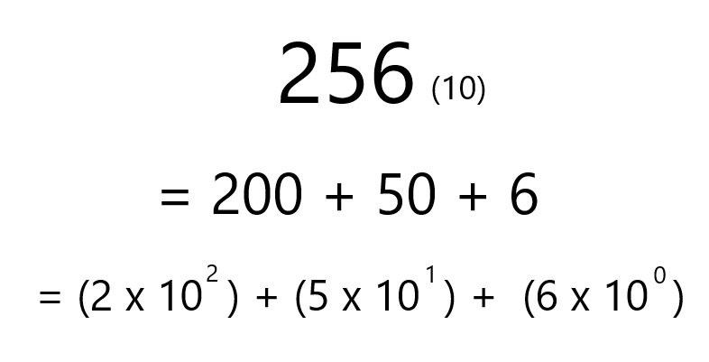 10진법을 계산하는 방법은 누구나 알고 있지만 256을 나눠서 생각해보자.