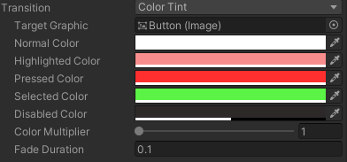 트랜지션은 (Color Tint, Sprite Swap, Animation) 3가지 옵션을 선택할 수 있습니다.