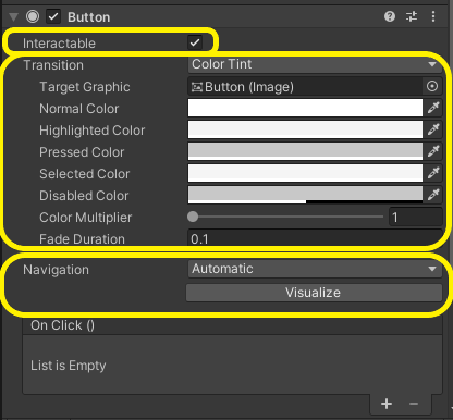 Interactable, Transition, Navigation 변수에 대해 배워보도록 하겠습니다