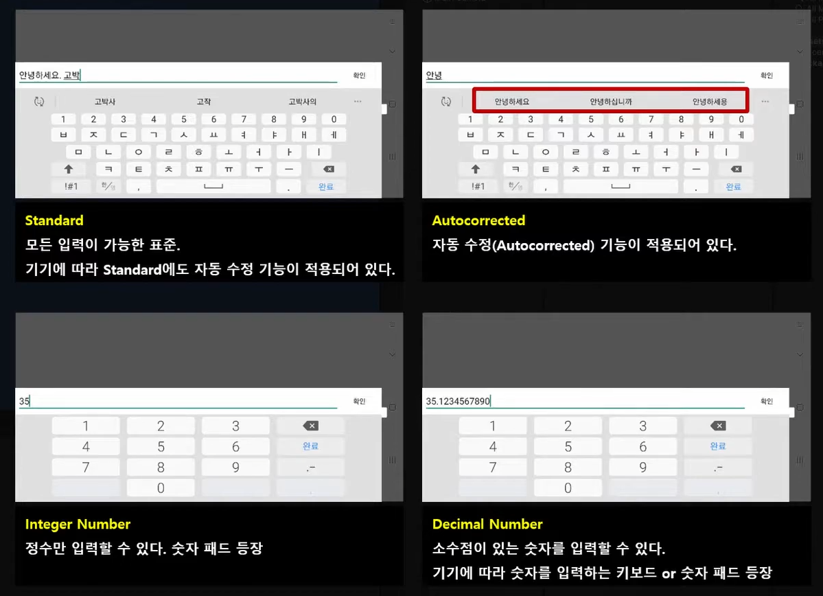 키보드를 이용해 문자열을 입력할 때 사용하는 상호작용 UI입니다.