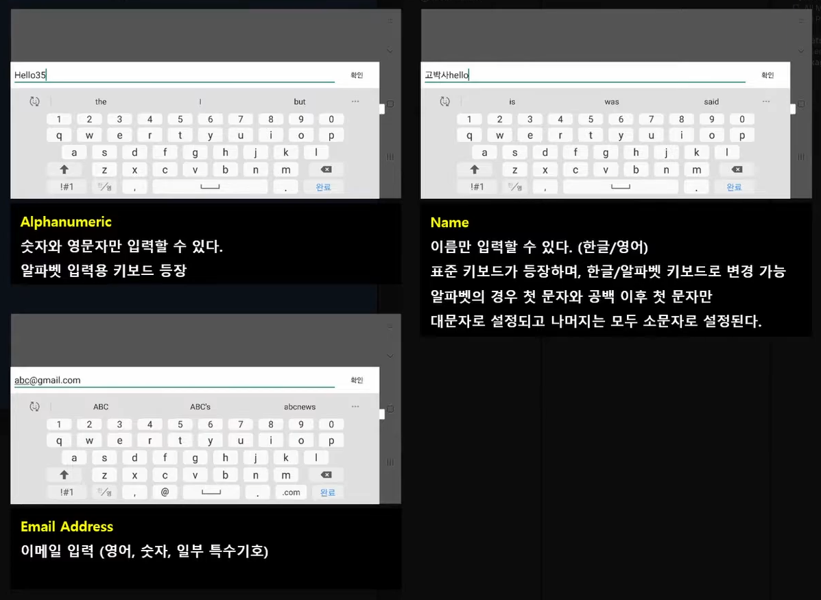 ID/PW 입력, 채팅 등에 사용합니다.
