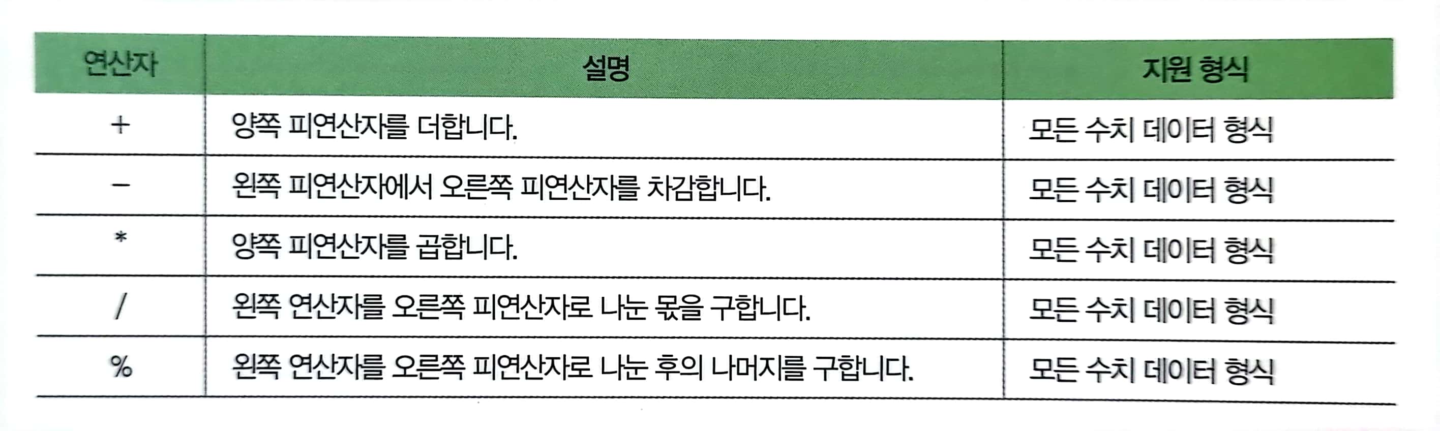 산술 연산자는 수치 형식의 데이터를 다루는 연산자입니다.