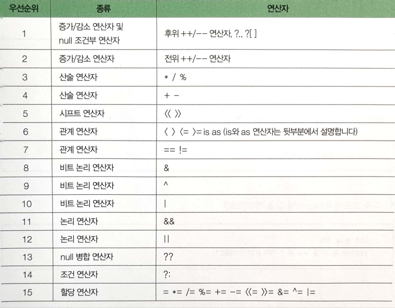 그리고 우선 순위가 같은 경우에는 왼쪽의 연산자가 오른쪽 연산자보다 우선순위가 높습니다.