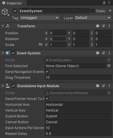 버튼같이 상호작용이 가능한 UI를 사용할 때 상호작용 이벤트를 처리하는 역할을 담당합니다.