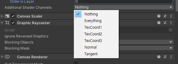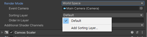 Sort Oder : Canvas 사이에서 순서를 정할 수 있습니다.