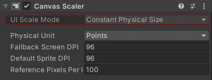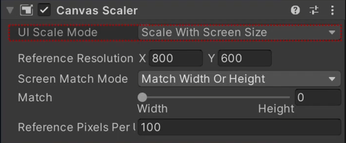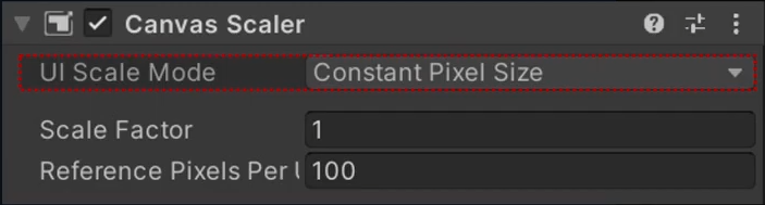 Canvas에 배치된 모든 UI 요소의 크기, 픽셀 밀도를 제어하는데 사용합니다.