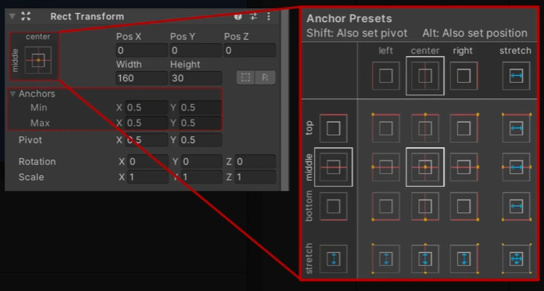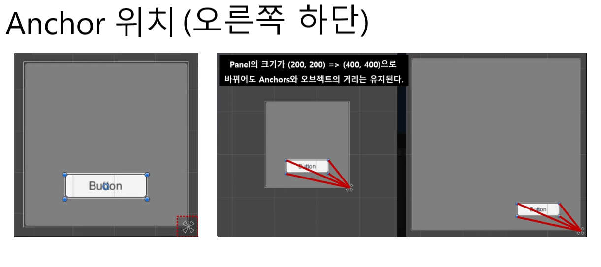 또한 Canvas Scaler의 옵션이 바뀌었을 경우 이미 배치가 되어있는