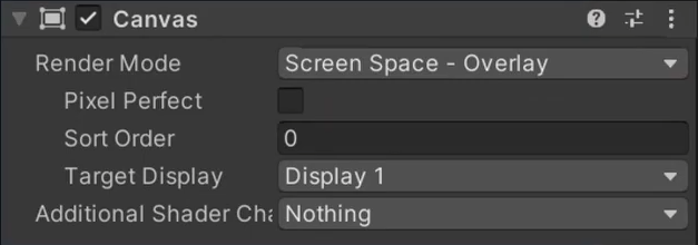 Canvas 컴포넌트의 랜더 모드가 Screen Space (Overlay)일 경우