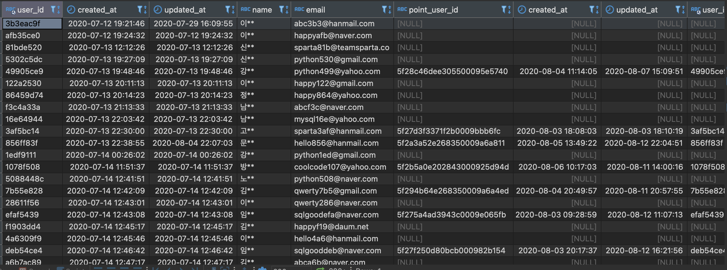 point 테이블에 없는 값이면 테이블을 합쳤을 때 NULL 값이 존재할 수 있음