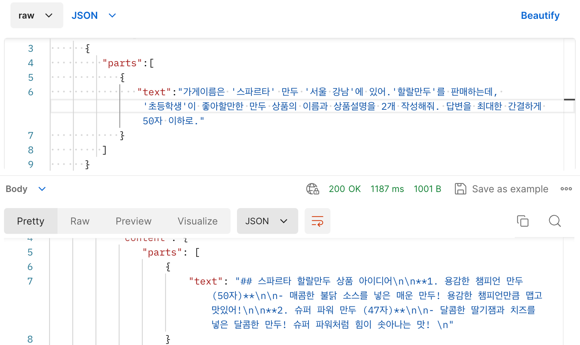 GeminiRequest geminiRequest = new GeminiRequest(message+", 답변을 최대한 간결하게 50자 이하로 해줘");