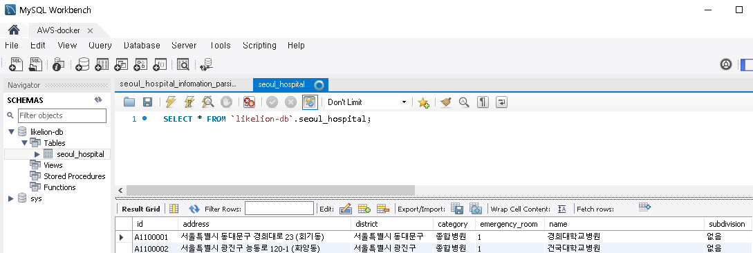 CREATE TABLE `likelion-db`.`seoul_hospital` (