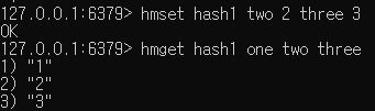 - 해시에서 여러 개의 필드에 해당하는 값들을 가져옵니다.