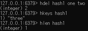 추가적으로 더 알고 싶은 명령어는 Redis Hash 명령어에서 확인 가능