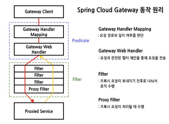 // 사용자가 요청하면 게이트웨이 Filter를 거쳐 해당 포트 서버로 이동시킴 이 과정에서 request, responseHeader에 값 추가시켜서 보내줌