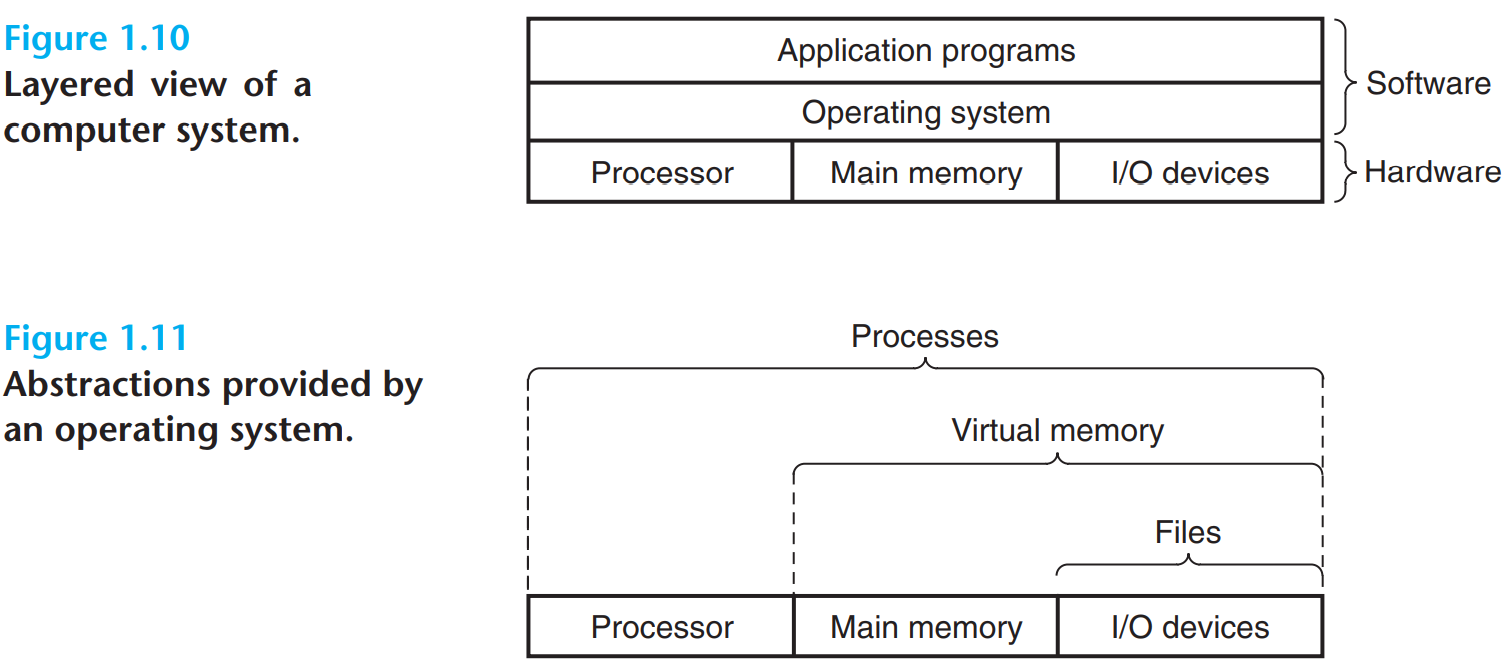 hello.c 처럼 프로그램이 키보드, 디스플레이 같은 하드웨어를 제어하지 않음 -> 운영체제(Operation Systemp)가 제공하는 서비스 활용