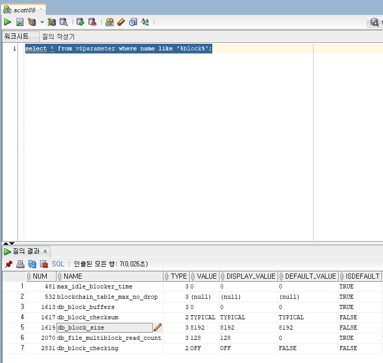 block 단위로 메모리에 올리게 된다 ( 데이터의 최소단위 ) 그러므로 필요에따라 block size를 줄여야함 기본 block size = 8k