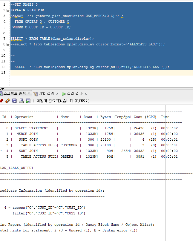 MERGE JOIN 사용대비 6배정도 COST 차이가 남
