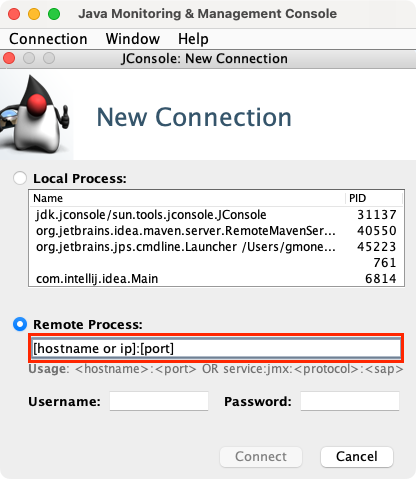 -Dcom.sun.management.jmxremote.rmi.port=<port number>-Djava.rmi.server.hostname=$(hostname -I)"