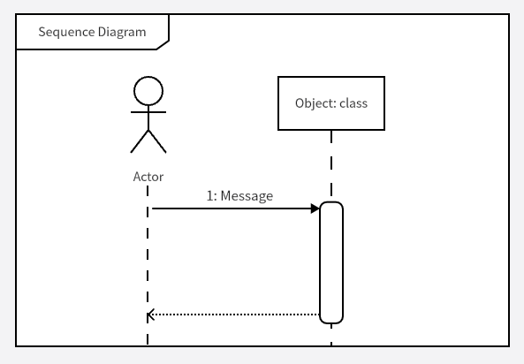 | 객체-Object | 객체는 메시지를 주고받는 주체이며 유효한 객체는 라이프라인을 가집니다. 박스 안에 객체 이름을 표시하고 박스 아래로 뻗어 수직 점선으로 생명선을 표시합니다. |