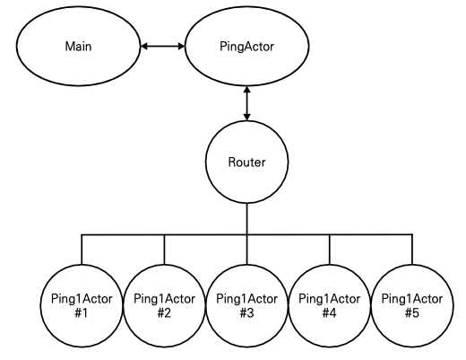 예제 코드가 구현하고 있는 액터와 라우터를 그림으로 표현하면 다음과 같다.