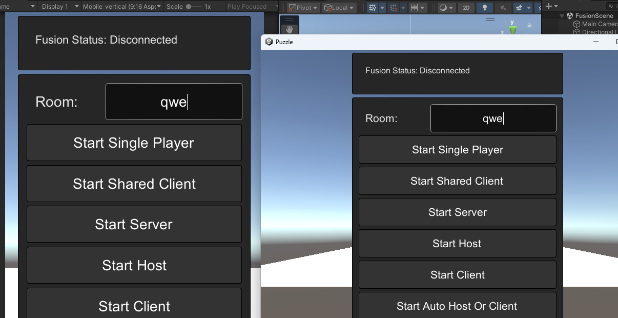 아래는 실행화면 입니다. PlayerSpawner를 약간 수정해서 세션 이름을 출력해봤습니다.