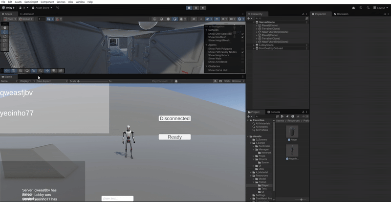 구 위를 걷거나 점프하는 것, 이동 및 애니메이션 동기화까지 잘 된 모습을 확인할 수 있습니다.