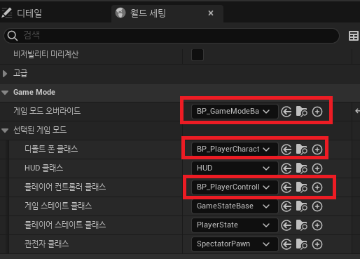 그 후에 월드세팅과 프로젝트 세팅에서 직접 만든 GameMode, Controller, Character 로 세팅해줍니다.