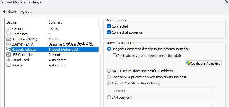 매번 VPN 켜고 끄기 귀찮으니 그냥 Bridge 설정하시는게 편합니다.