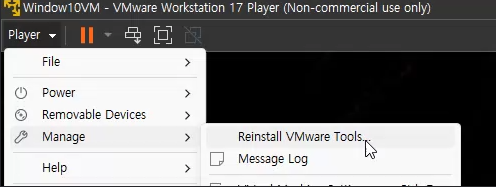 VMWare Tools 설치가 바로 안되면 아래쪽 창에 적힌대로 하면 됩니다.